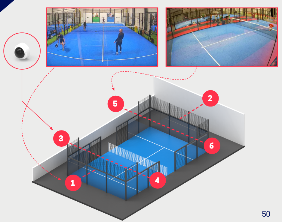 In the picture below, you can add up to 6 cameras to get all the possible views of the court. They are our recommended locations to set up the cameras.