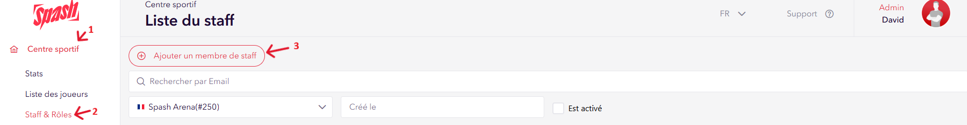 Pour ajouter des nouveaux managers, veuillez contacter le support directement à l'adresse suivante : support@spash.com.