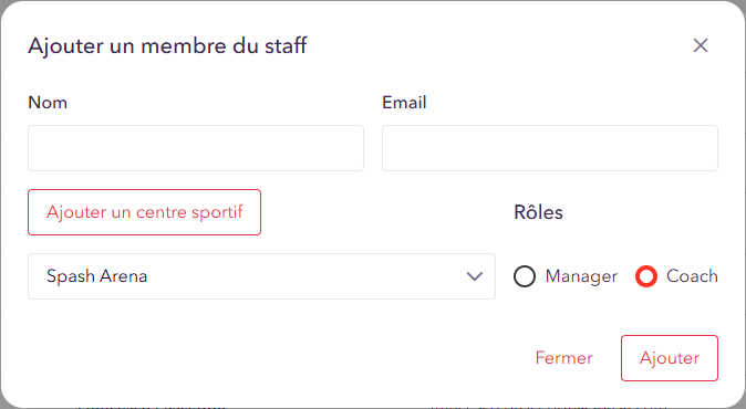 Pour ajouter un nouveau coach, veuillez suivre les étapes ci-dessous :